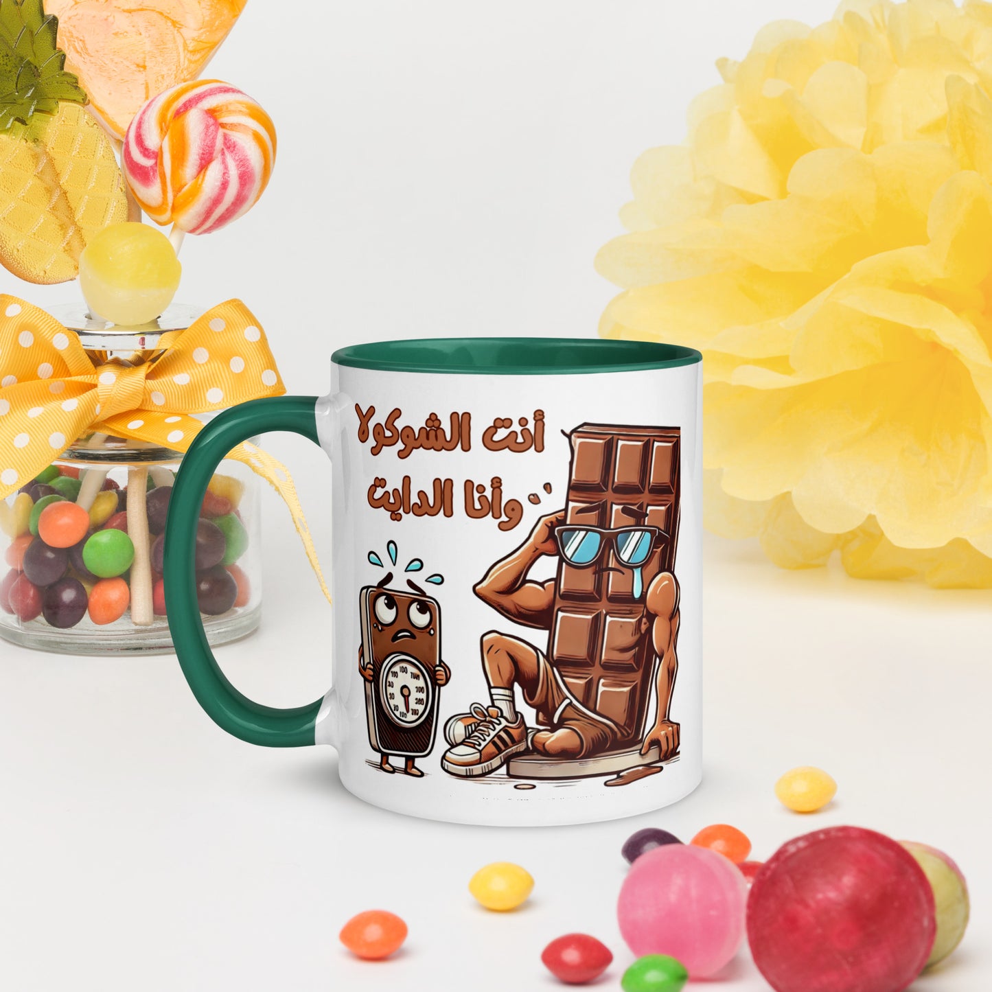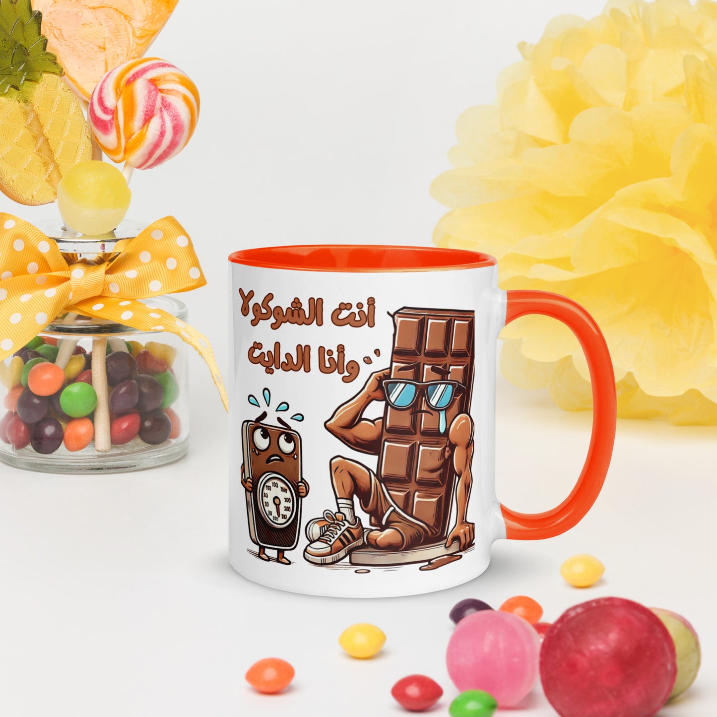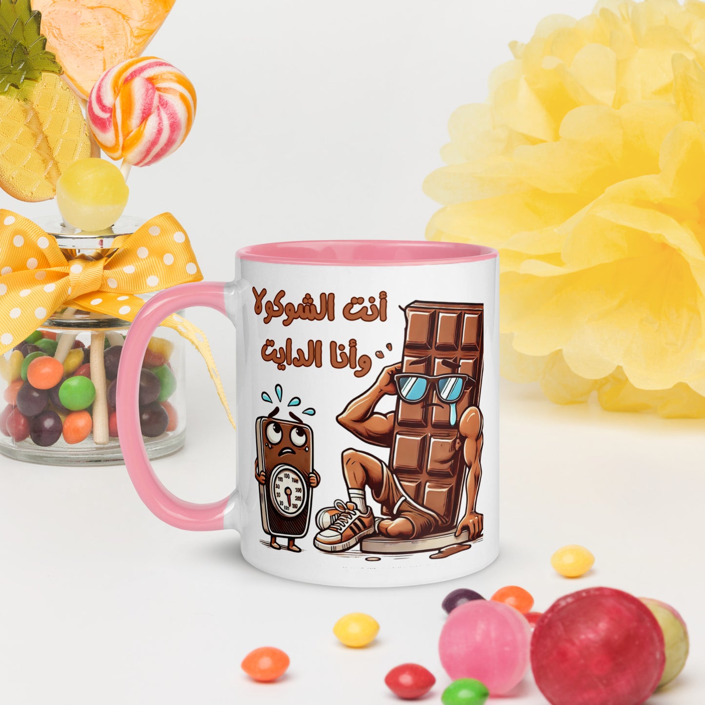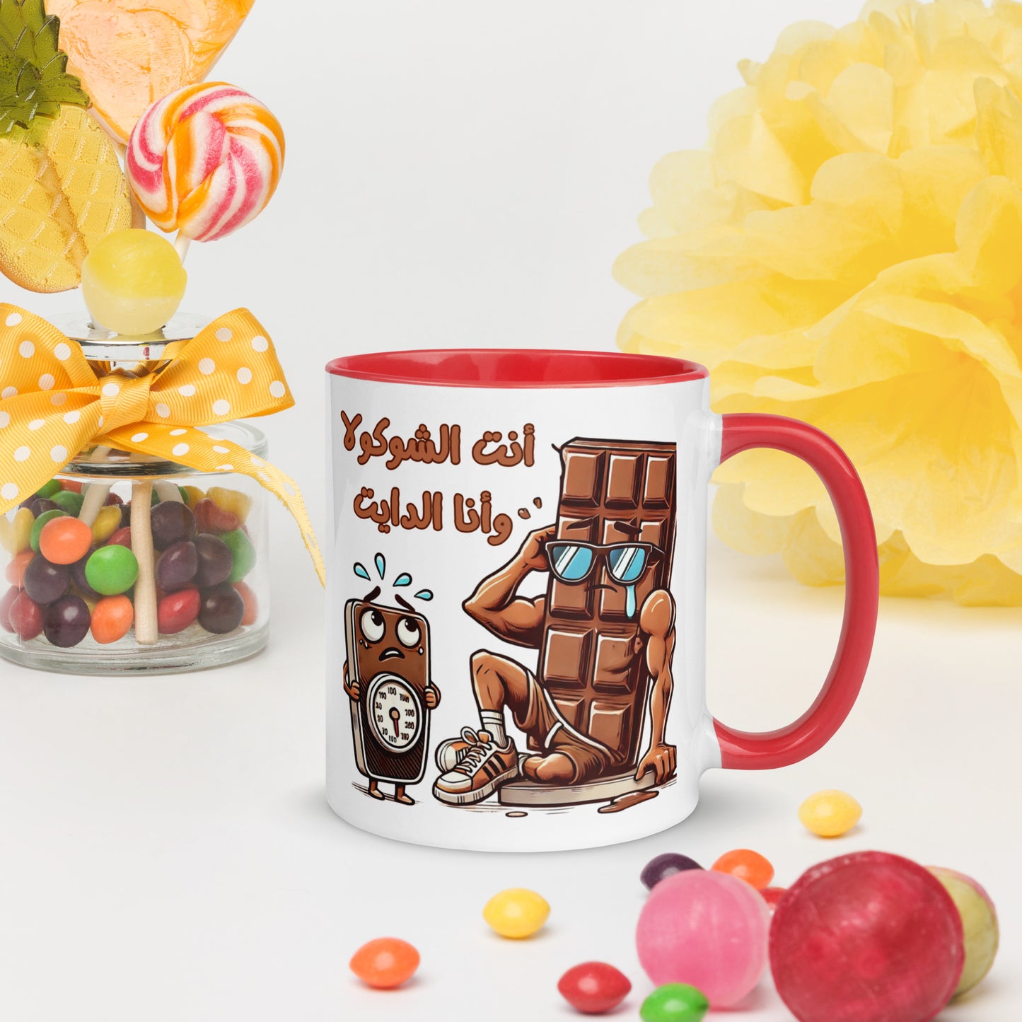 Start your day with a laugh using this hilarious mug featuring a playful design of a muscular chocolate bar and a stressed-out scale, accompanied by the phrase ‘You Are the Chocolate, I Am the Diet.’ Perfect for Valentine’s Day or as a humorous gift for chocolate lovers and fitness enthusiasts alike, this mug adds a touch of fun and love to your coffee or tea time