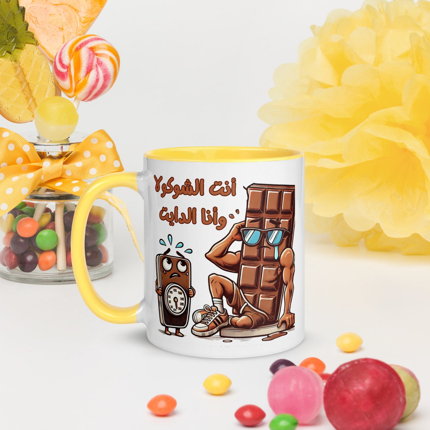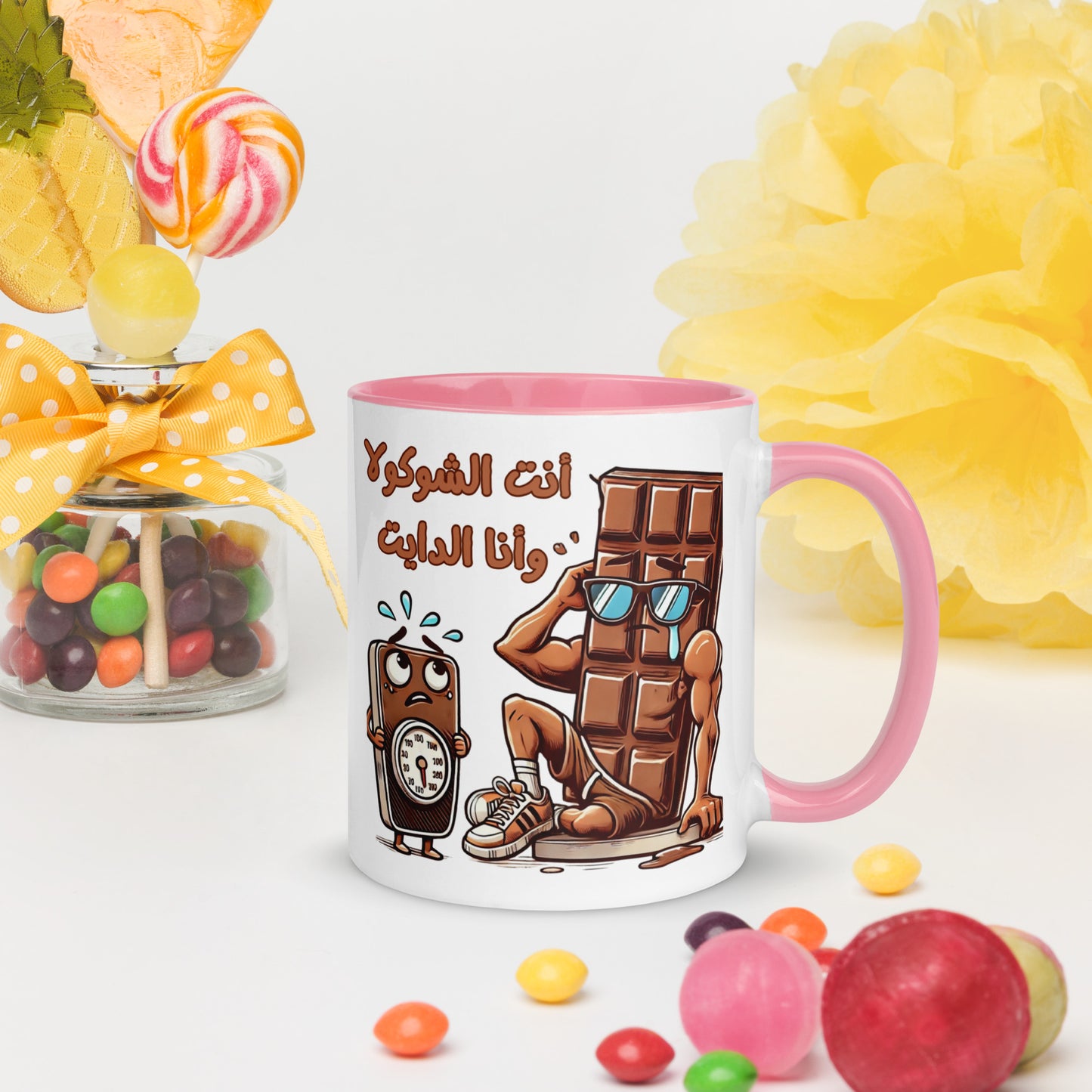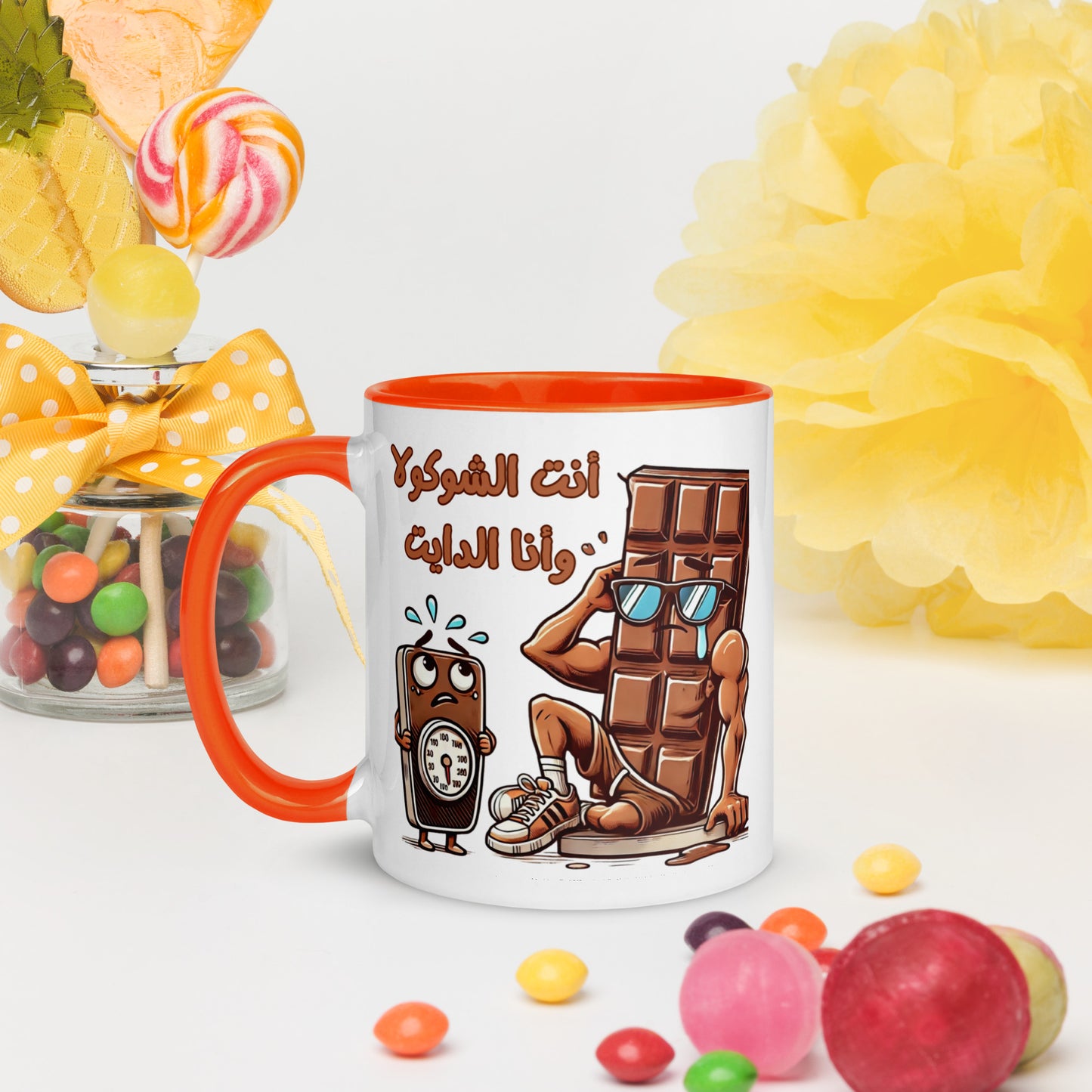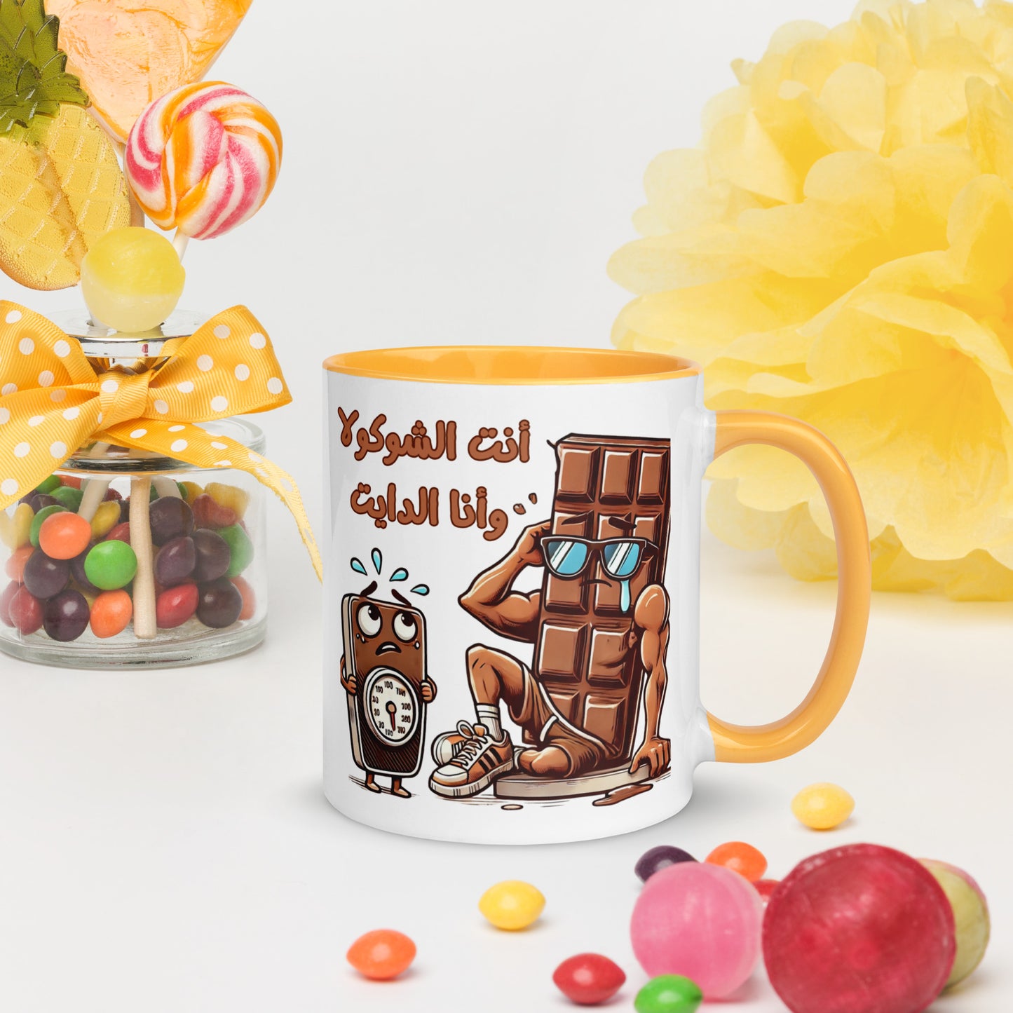 Start your day with a laugh using this hilarious mug featuring a playful design of a muscular chocolate bar and a stressed-out scale, accompanied by the phrase ‘You Are the Chocolate, I Am the Diet.’ Perfect for Valentine’s Day or as a humorous gift for chocolate lovers and fitness enthusiasts alike, this mug adds a touch of fun and love to your coffee or tea time