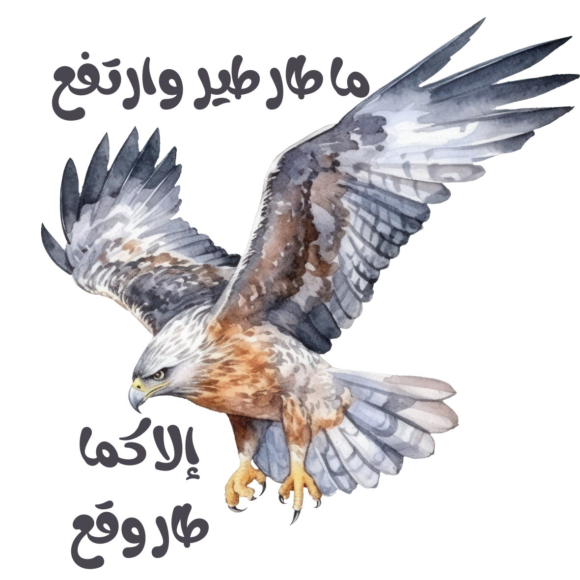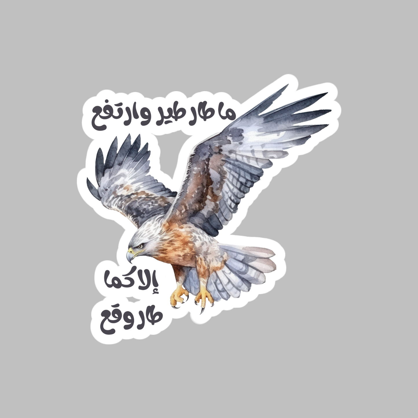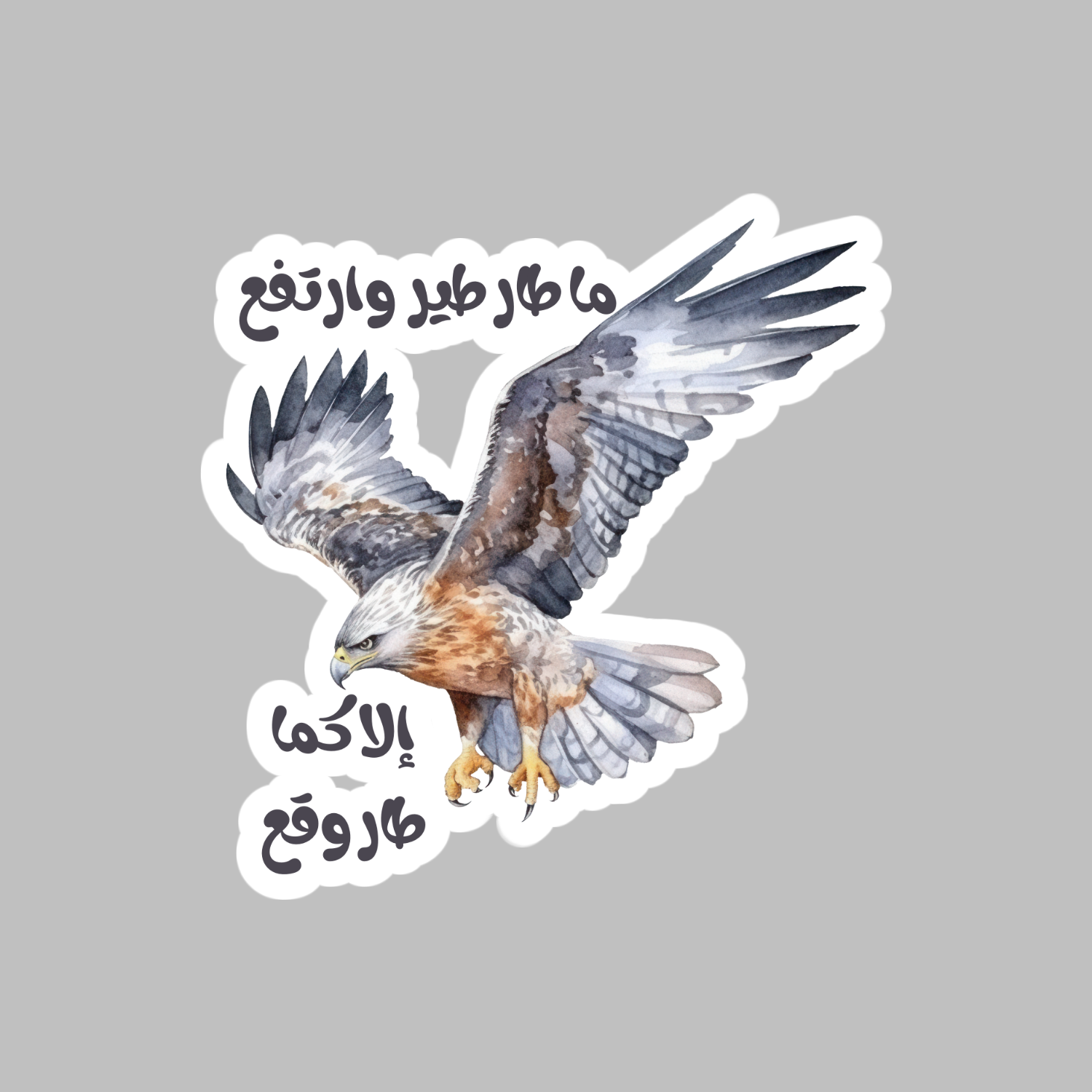 This beautifully designed sticker features a watercolor eagle paired with the classic Arabic proverb: “ما طار طير وارتفع إلا كما طار وقع” (“No bird soared high except that it fell”). A perfect blend of art and philosophy, this sticker is ideal for lovers of Arabic culture, language, and timeless proverbs. Add a touch of inspiration to your laptop, journal, or workspace!
