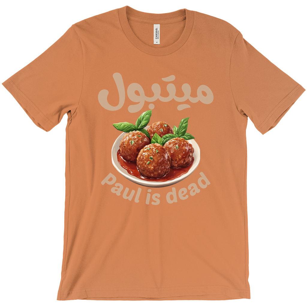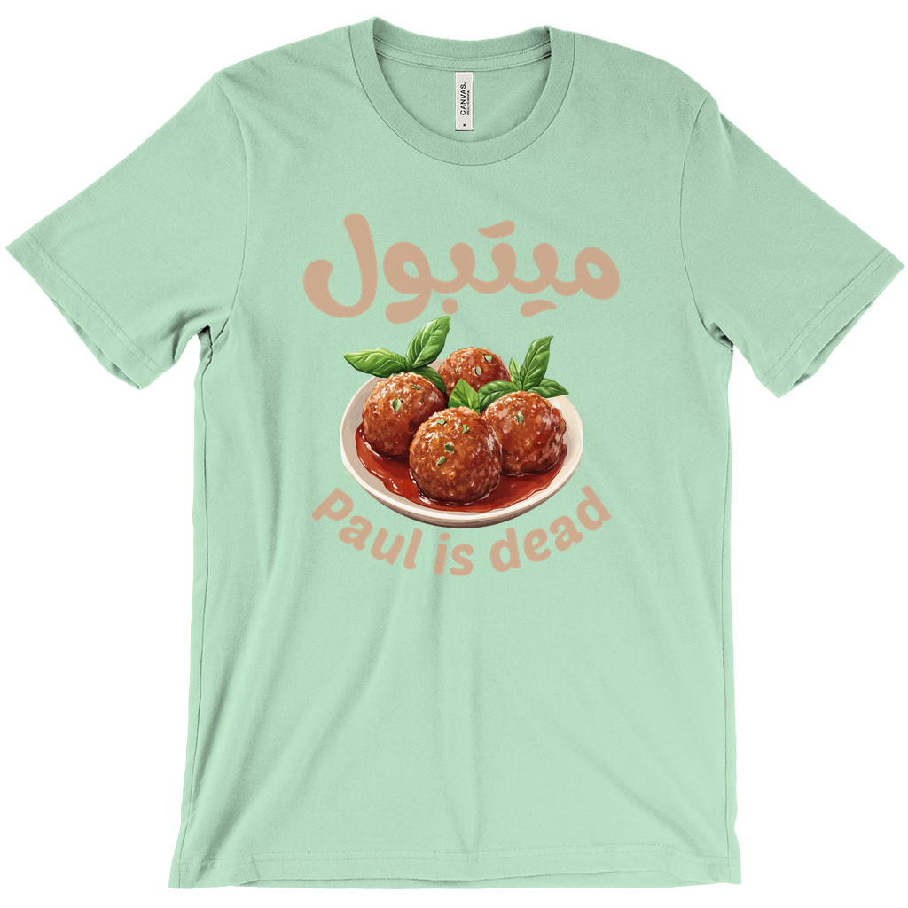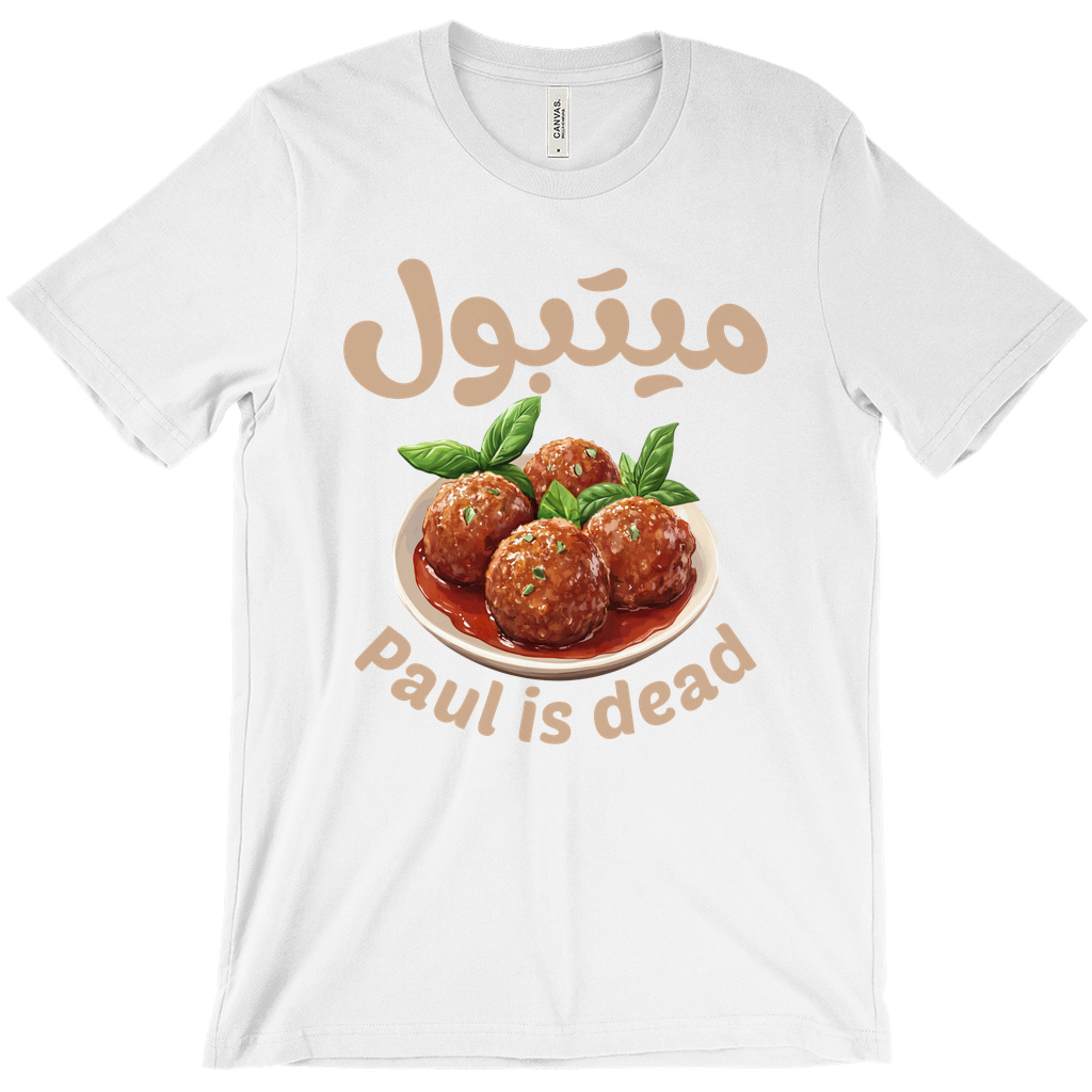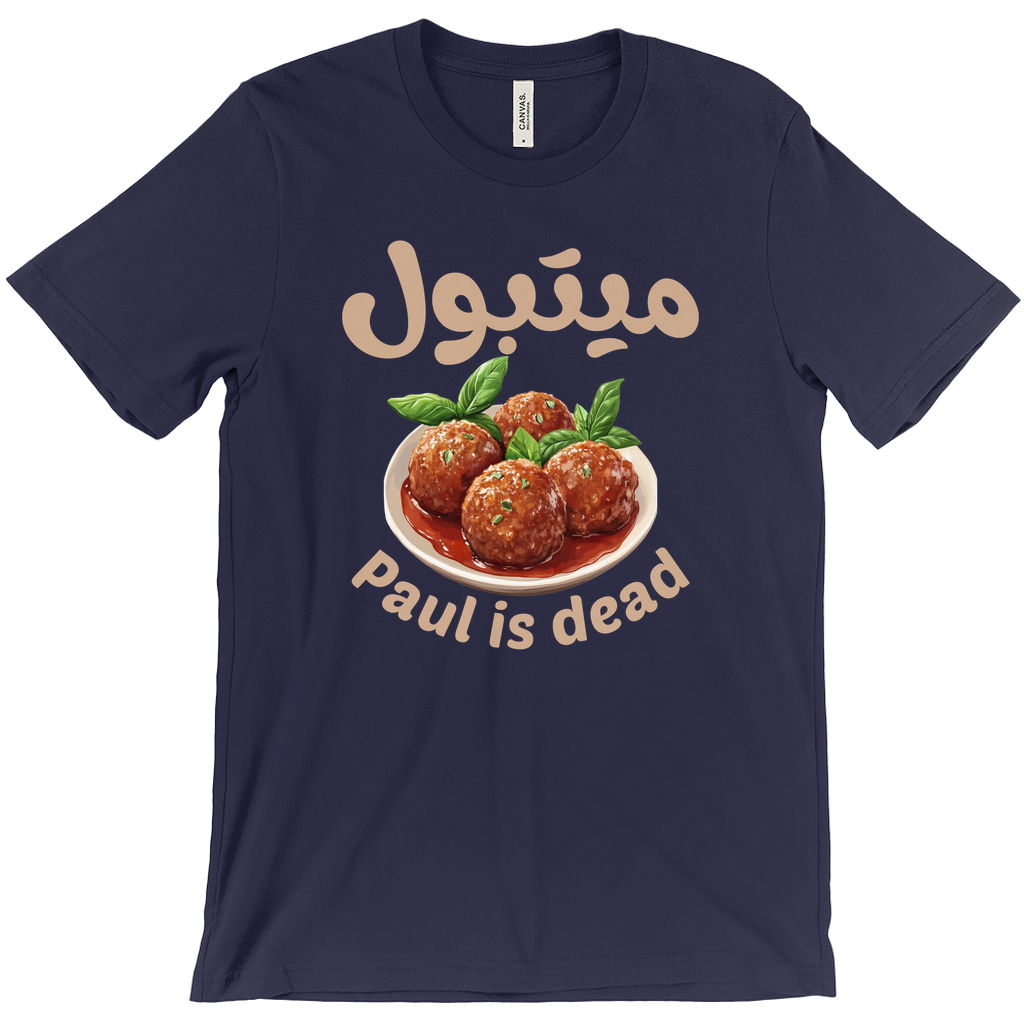 This hilarious design takes a playful jab at the literal Arabic translation of “Meatball” (ميتبول) while featuring a delicious plate of saucy meatballs and the cryptic phrase “Paul is dead.” Perfect for anyone who enjoys wordplay, puns, and a good laugh at the quirks of translation. A fun and creative way to highlight the humor of cultural and linguistic differences with a delicious twist!