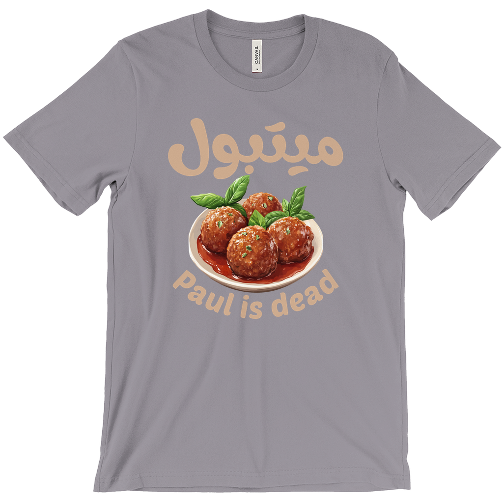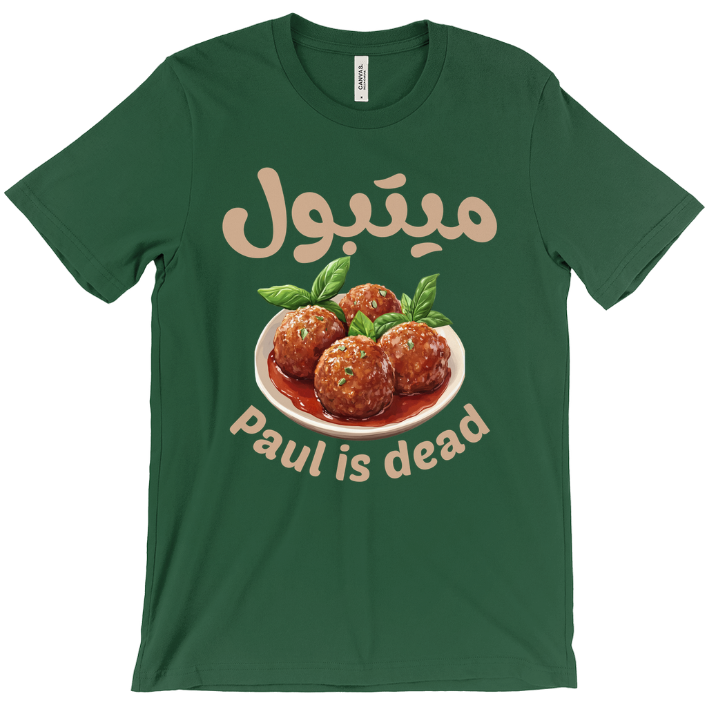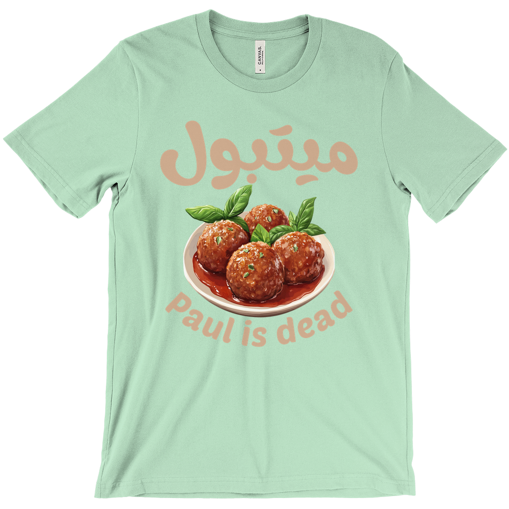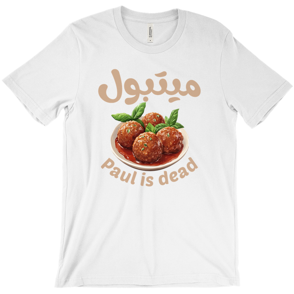 This hilarious design takes a playful jab at the literal Arabic translation of “Meatball” (ميتبول) while featuring a delicious plate of saucy meatballs and the cryptic phrase “Paul is dead.” Perfect for anyone who enjoys wordplay, puns, and a good laugh at the quirks of translation. A fun and creative way to highlight the humor of cultural and linguistic differences with a delicious twist!