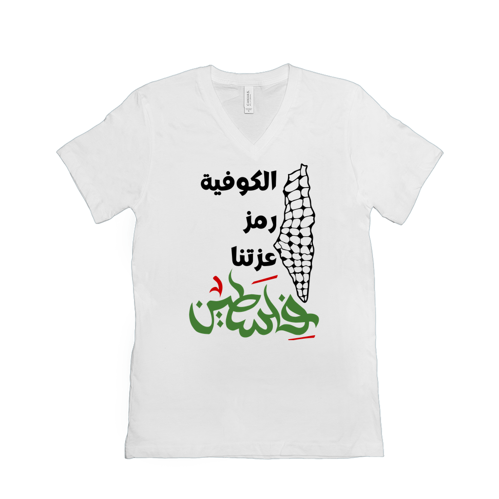 Celebrate Palestinian heritage and resilience with this powerful t-shirt design. Featuring bold Arabic calligraphy that reads “الكوفية رمز عزتنا” (The keffiyeh is our symbol of pride), paired with an artistic keffiyeh pattern and the word “فلسطين” in vibrant red and green. This design embodies the strength, unity, and cultural significance of the keffiyeh as a timeless emblem of Palestinian identity. Perfect for showing solidarity and pride in style!