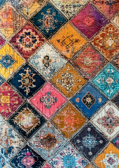 Patchwork of Heritage is a lined journal that celebrates the soulful intricacy of Arabic and Middle Eastern textile traditions. The cover features a mesmerizing grid of weathered, woven motifs, each diamond a window into the artistry of tribal rugs, desert looms, and generations of cultural storytelling.