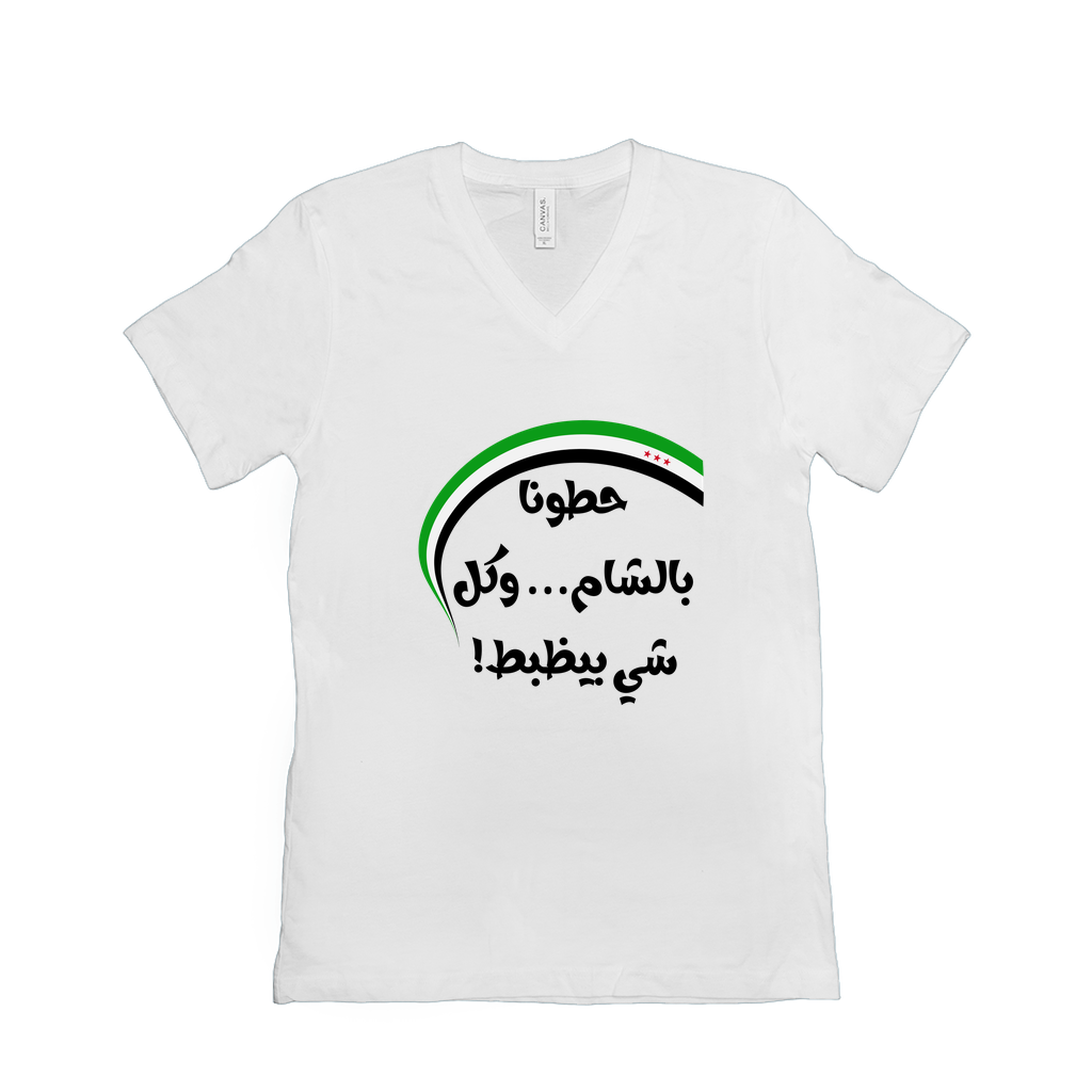 Add a touch of humor and patriotism with this witty design featuring the phrase (In Damascus, everything works out!). The design incorporates the Syrian flag colors in a stylish and uplifting arc, symbolizing hope, pride, and the unwavering spirit of the Syrian people. This t-shirt is perfect for expressing your love for Syria with a playful and optimistic twist.