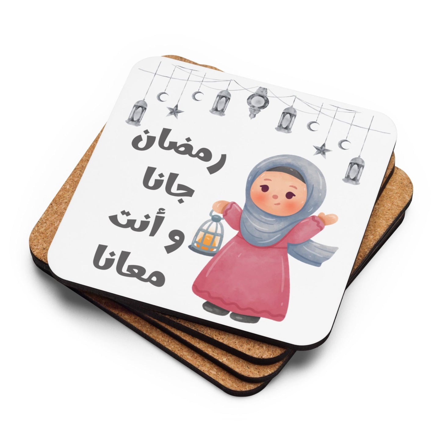 Ramadan Girl with Lantern Illustration | Cork-back coaster