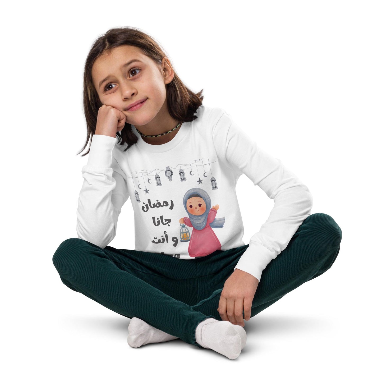 Ramadan Lantern Joyful Girl Illustration | Youth long sleeve tee